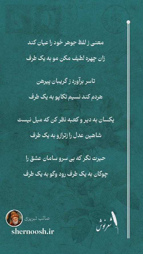 5 صائب مدار فیض خود راتشنگان دریغ این آب تا نرفته ازین جو به یک طرف