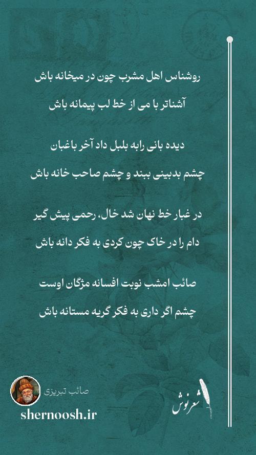 4 صائب امشب نوبت افسانه مژگان اوست چشم اگر داری به فکر گریه مستانه باش