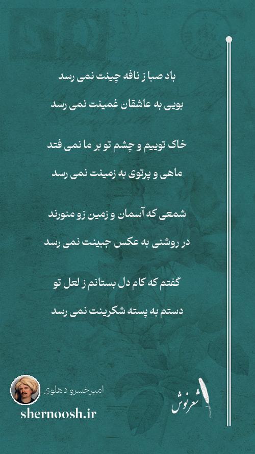 1 باد صبا ز نافه چینت نمی رسد بویی به عاشقان غمینت نمی رسد