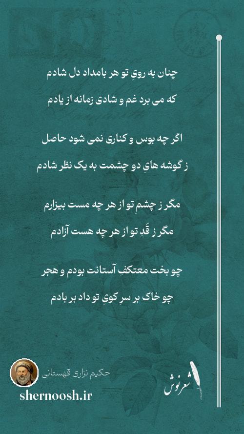1 چنان به رویِ تو هر بامداد دل شادم که می برد غم و شادی زمانه از یادم