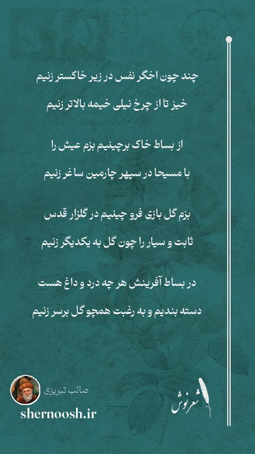2 از بساط خاک برچینیم بزم عیش را با مسیحا در سپهر چارمین ساغر زنیم