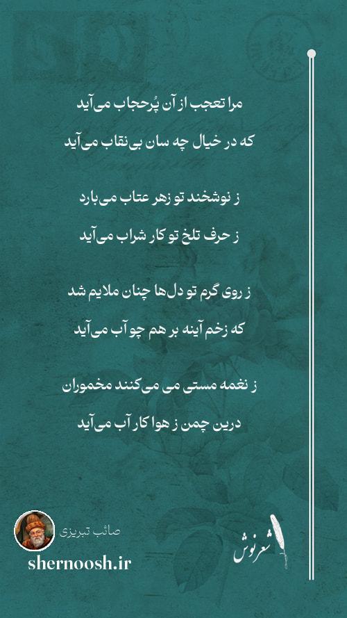 1 مرا تعجب از آن پُرحجاب میآید که در خیال چه سان بینقاب میآید