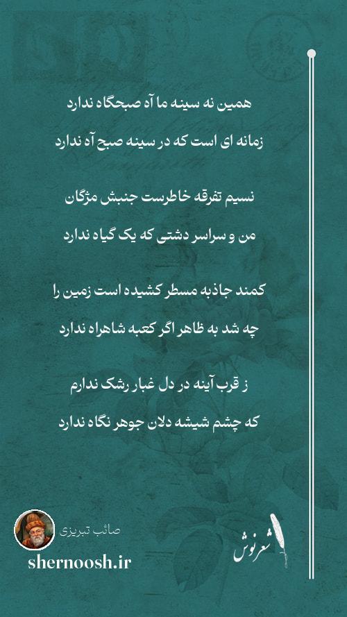 1 همین نه سینه ما آه صبحگاه ندارد زمانه ای است که در سینه صبح آه ندارد