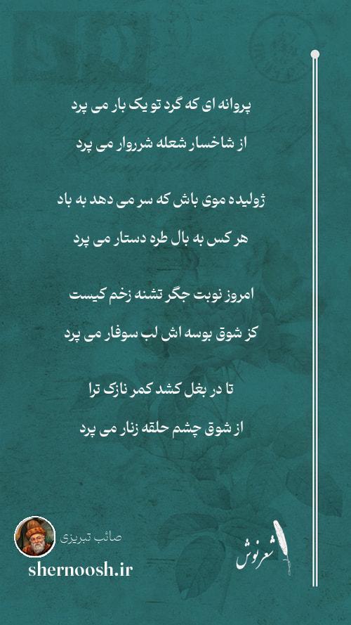 10 صائب شراب شوق چنین گر اثر کند مهر خموشی از لب اظهار می پرد