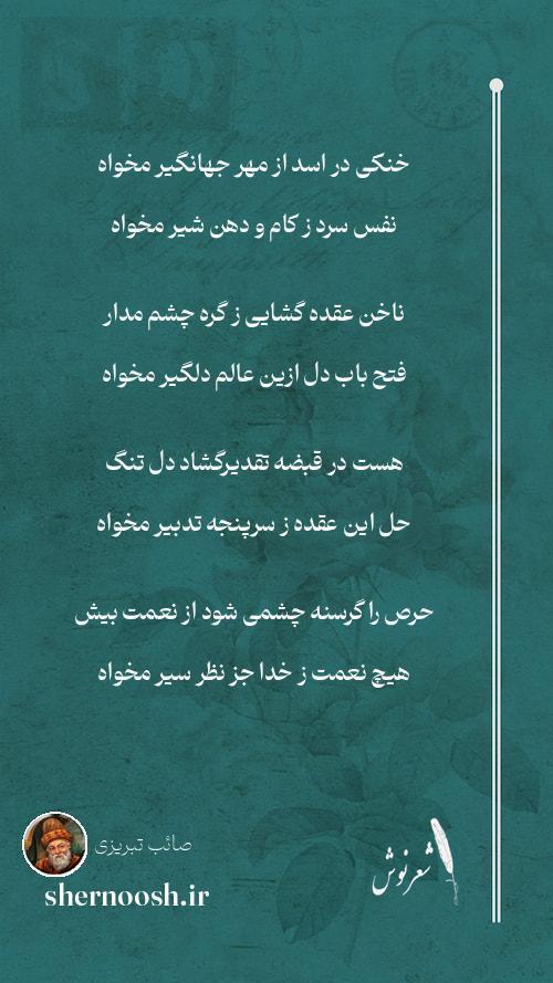 1 خنکی در اسد از مهر جهانگیر مخواه نفس سرد ز کام و دهن شیر مخواه