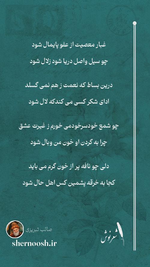 8 غبار خاطرآن تیغ می شود صائب اگر چوآب گهرخون من زلال شود