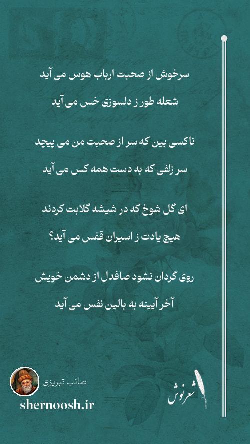 5 صائب از گردش چرخ است فغان دل ما می رود محمل و آواز جرس می آید