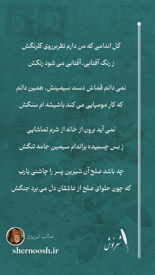 1 گل اندامی که من دارم نظربرروی گلرنگش ز رنگ آفتابی، آفتابی می شود رنگش