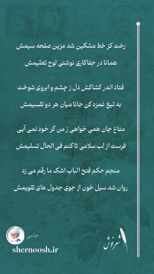 1 رخت کز خط مشکین شد مزین صفحه سیمش همانا در جفاکاری نوشتی لوح تعلیمش