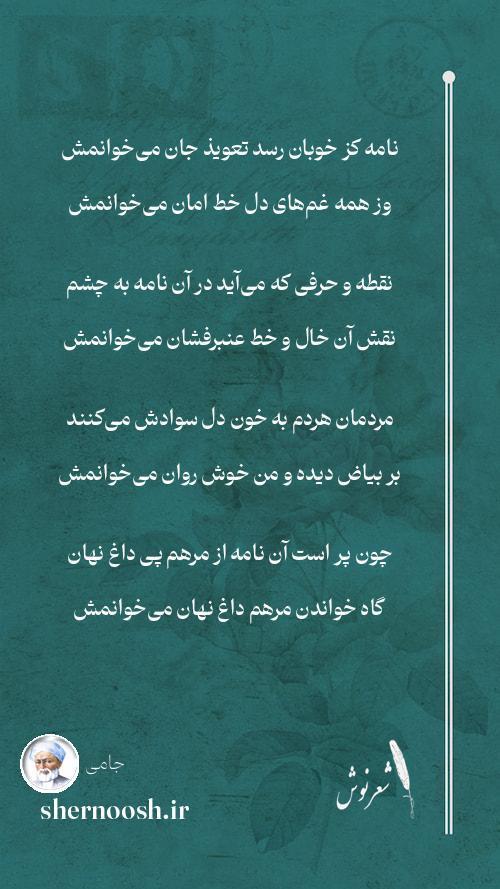 7 دوستان گویند جامی نامه خواندن تا به کی ورد جان و حرز ایمان است از آن میخوانمش
