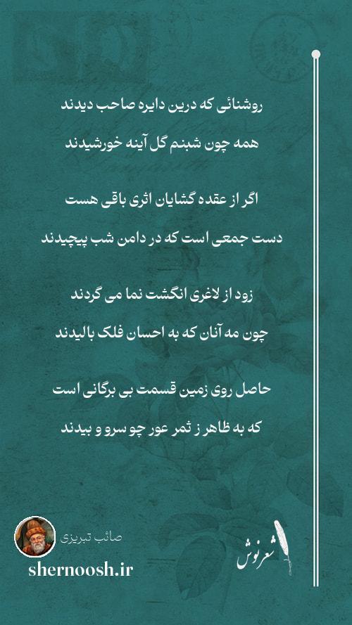 1 روشنائی که درین دایره صاحب دیدند همه چون شبنم گل آینه خورشیدند