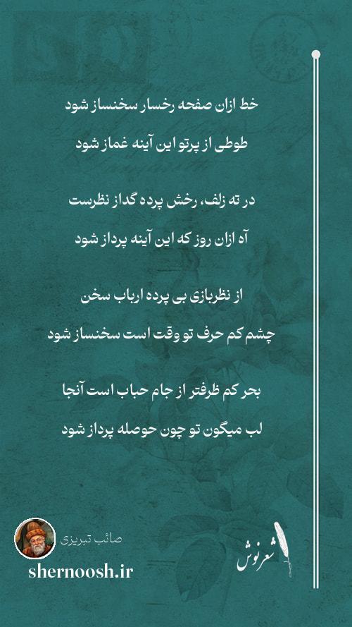 1 خط ازان صفحه رخسار سخنساز شود طوطی از پرتو این آینه غماز شود