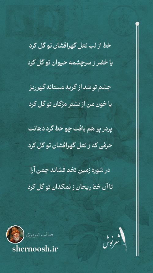 1 خط از لب لعل گهرافشان تو گل کرد یا خضر ز سرچشمه حیوان تو گل کرد
