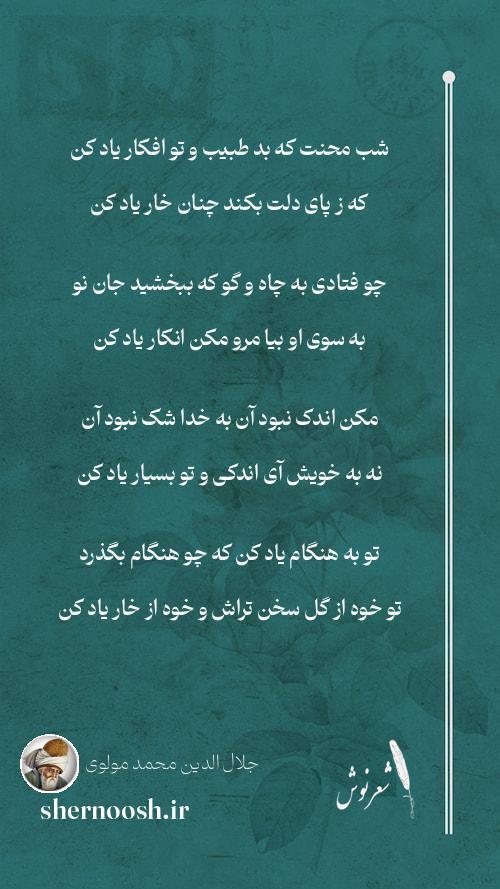 1 شب محنت که بد طبیب و تو افکار یاد کن که ز پای دلت بکند چنان خار یاد کن