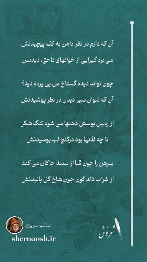 2 چون تواند دیده گستاخ من بی پرده دید؟ آن که نتوان سیر دیدن در نظر پوشیدنش