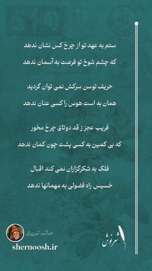 1 ستم به عهد تو از چرخ کس نشان ندهد که چشم شوخ تو فرصت به آسمان ندهد