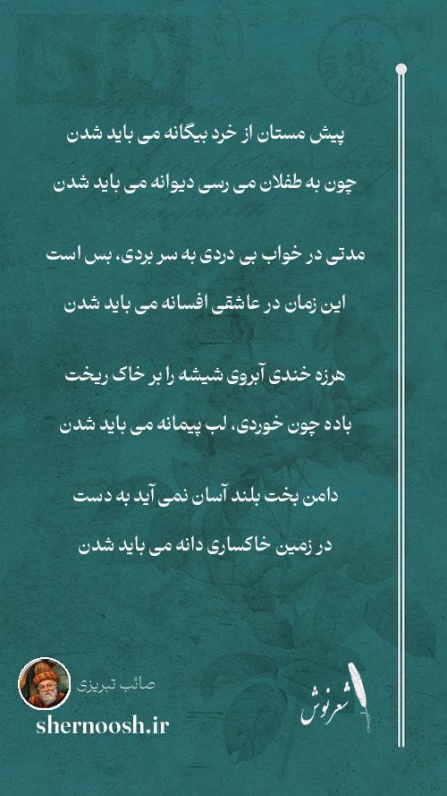 3 هرزه خندی آبروی شیشه را بر خاک ریخت باده چون خوردی، لب پیمانه می باید شدن