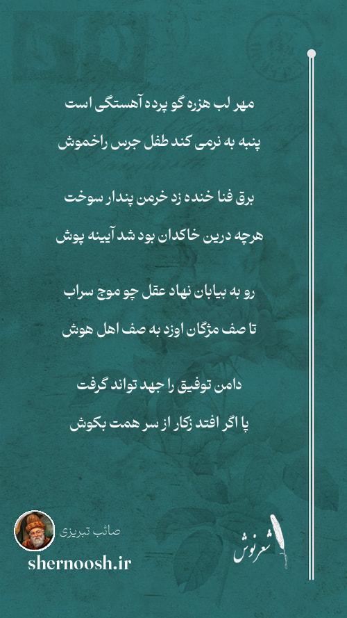 1 مهر لب هزره گو پرده آهستگی است پنبه به نرمی کند طفل جرس راخموش