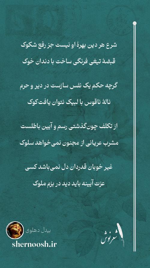 1 شرع هر دین بهرهٔ او نیست جز رفع شکوک قبضهٔ تیغی فرنگی ساخت با دندان خوک
