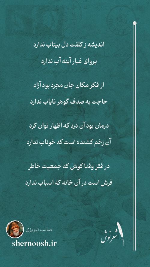 1 اندیشه ز کلفت دل بیتاب ندارد پروای غبار آینه آب ندارد