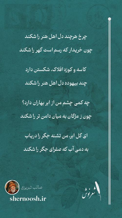 1 چرخ هرچند دل اهل هنر را شکند چون خریدار که رسم است گهر را شکند
