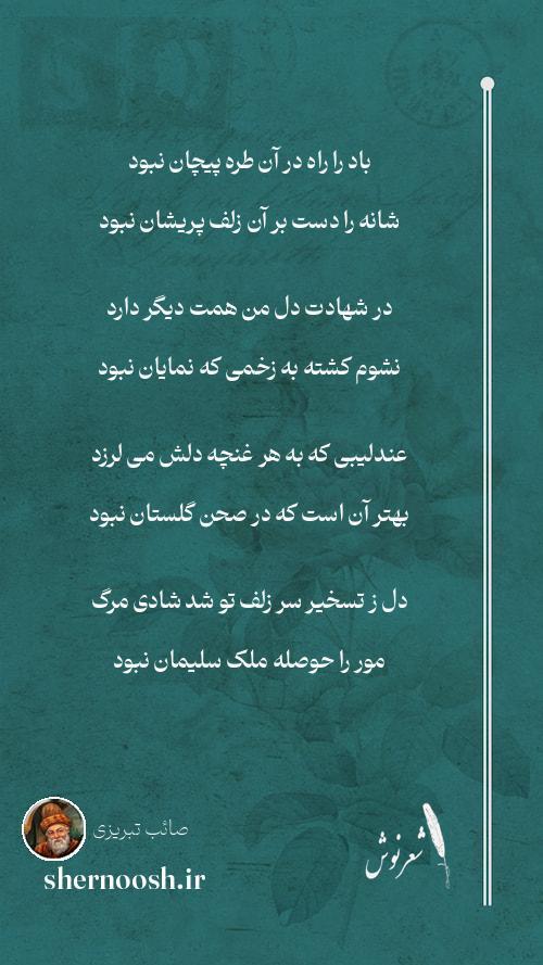 9 مصرعی سر نزند از لب فکرت صائب اگر آن زلف سیه سلسله جنبان نبود