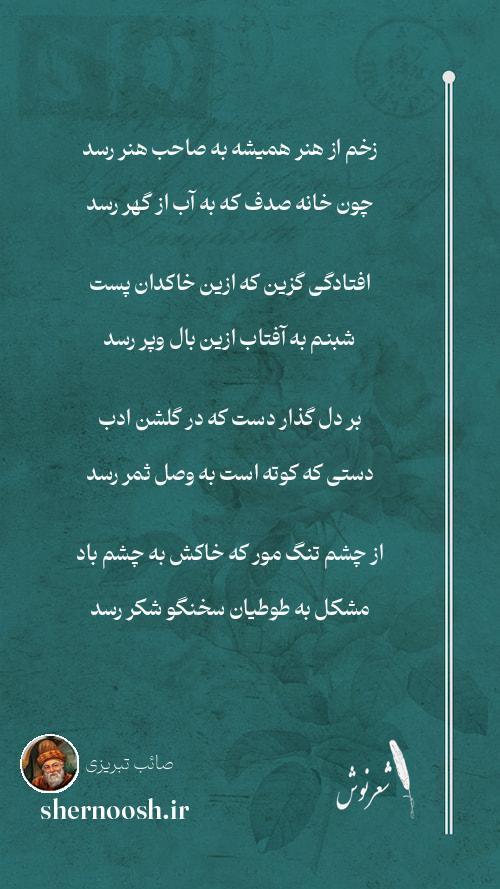 1 زخم از هنر همیشه به صاحب هنر رسد چون خانه صدف که به آب از گهر رسد