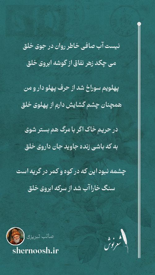 10 نیست چون صائب ترا از خلق امید روی دل بهتر آن باشد که سال و مه نبینی روی خلق