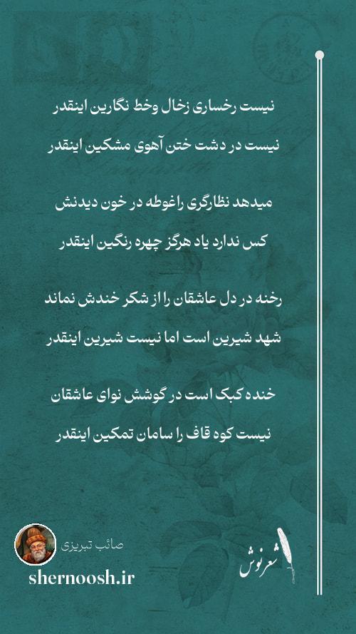 1 نیست رخساری زخال وخط نگارین اینقدر نیست در دشت ختن آهوی مشکین اینقدر