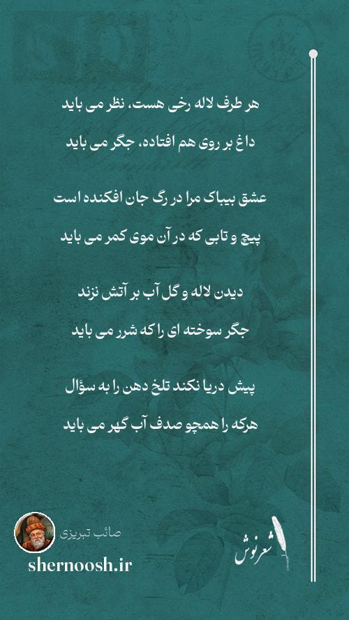 1 هر طرف لاله رخی هست، نظر می باید داغ بر روی هم افتاده، جگر می باید