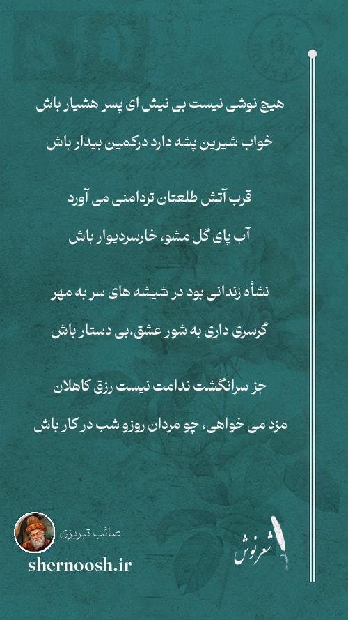 1 هیچ نوشی نیست بی نیش ای پسر هشیار باش خواب شیرین پشه دارد درکمین بیدار باش