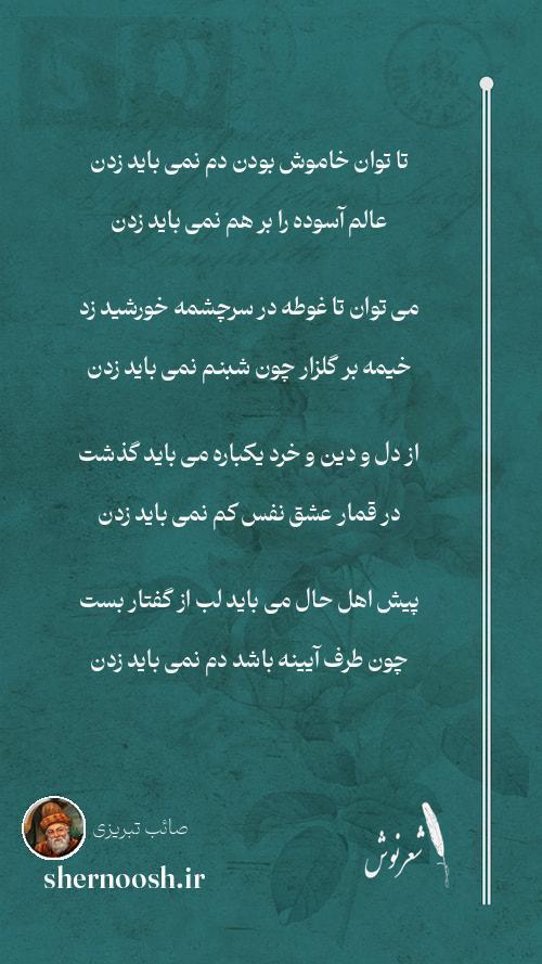 1 تا توان خاموش بودن دم نمی باید زدن عالم آسوده را بر هم نمی باید زدن