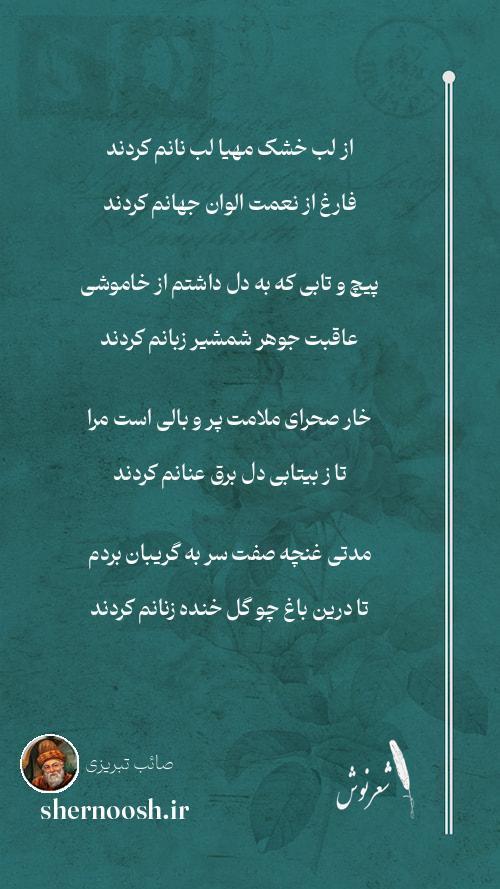 1 از لب خشک مهیا لب نانم کردند فارغ از نعمت الوان جهانم کردند