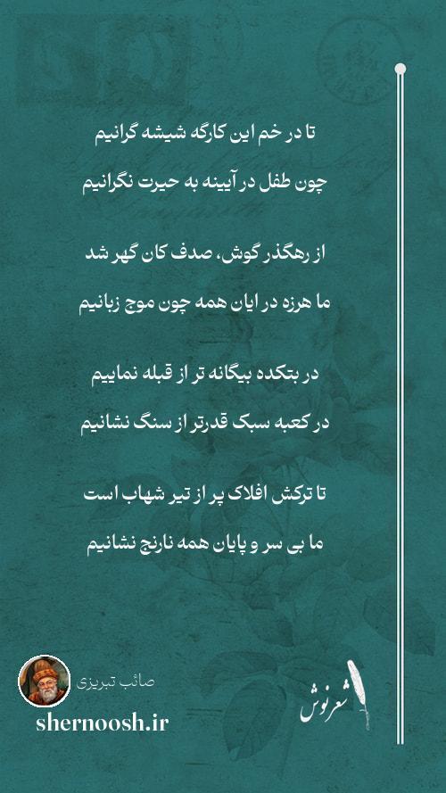 1 تا در خم این کارگه شیشه گرانیم چون طفل در آیینه به حیرت نگرانیم