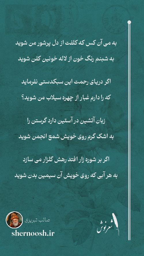 1 به می آن کس که کلفت از دل پرشور من شوید به شبنم رنگ خون از لاله خونین کفن شوید