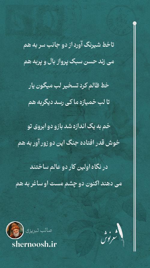 1 تاخط شیرنگ آورد از دو جانب سر به هم می زند حسن سبک پرواز بال و پربه هم