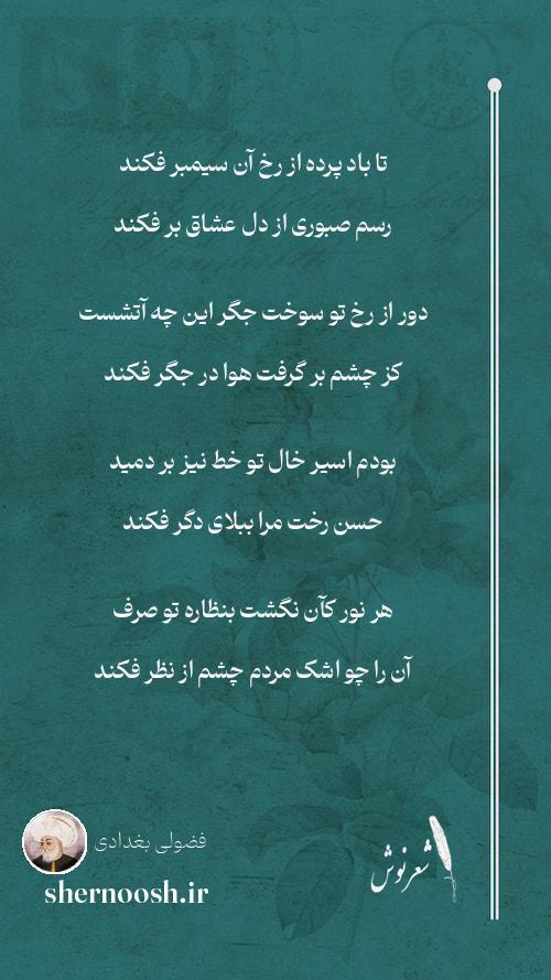 7 خاک درت نکرد فضولی مقام خود او را بدین گناه فلک در بدر فکند