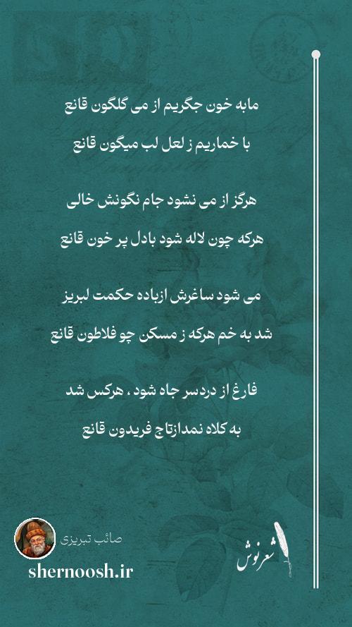 2 هرگز از می نشود جام نگونش خالی هرکه چون لاله شود بادل پر خون قانع
