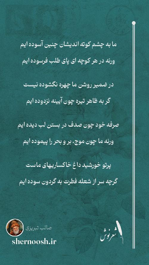 1 ما به چشم کوته اندیشان چنین آسوده ایم ورنه در هر کوچه ای پای طلب فرسوده ایم