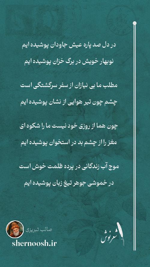 1 در دل صد پاره عیش جاودان پوشیده ایم نوبهار خویش در برگ خزان پوشیده ایم