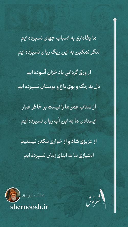 1 ما وفاداری به اسباب جهان نسپرده ایم لنگر تمکین به این ریگ روان نسپرده ایم