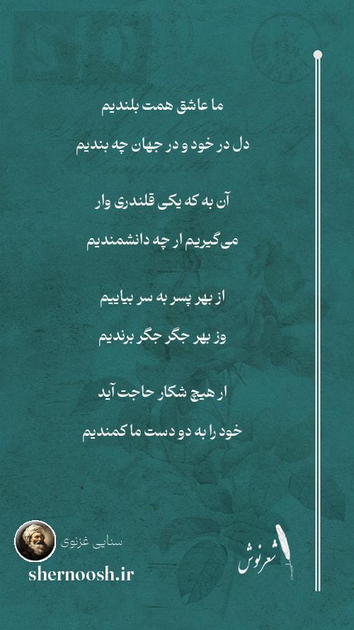 1 ما عاشق همت بلندیم دل در خود و در جهان چه بندیم