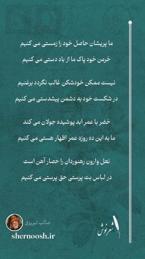 5 ما به حرف تلخ از آن لبهای میگون قانعیم از تنک ظرفی به بوی باده مستی می کنیم