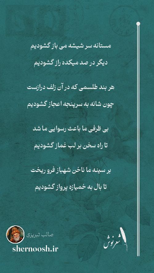 1 مستانه سر شیشه می باز گشودیم دیگر در صد میکده راز گشودیم