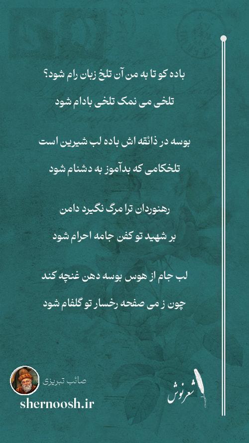 1 باده کو تا به من آن تلخ زبان رام شود؟ تلخی می نمک تلخی بادام شود