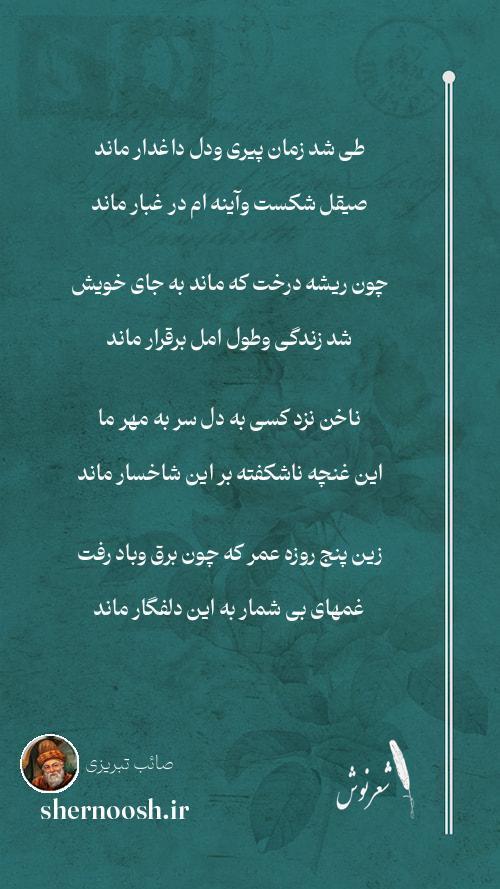 1 طی شد زمان پیری ودل داغدار ماند صیقل شکست وآینه ام در غبار ماند