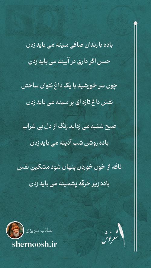 10 صحبت اهل زمان صائب ندارد نشأه ای می به یاد مردم پیشینه می باید زدن