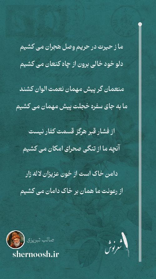 6 در هوای کام دنیا نیست آه سرد ما بر سواد آفرینش خط بطلان می کشیم