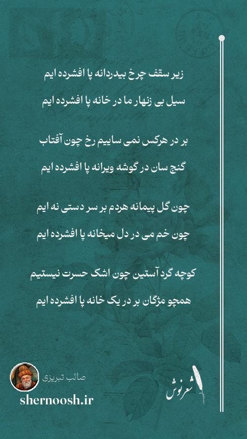 1 زیر سقف چرخ بیدردانه پا افشرده ایم سیل بی زنهار ما در خانه پا افشرده ایم