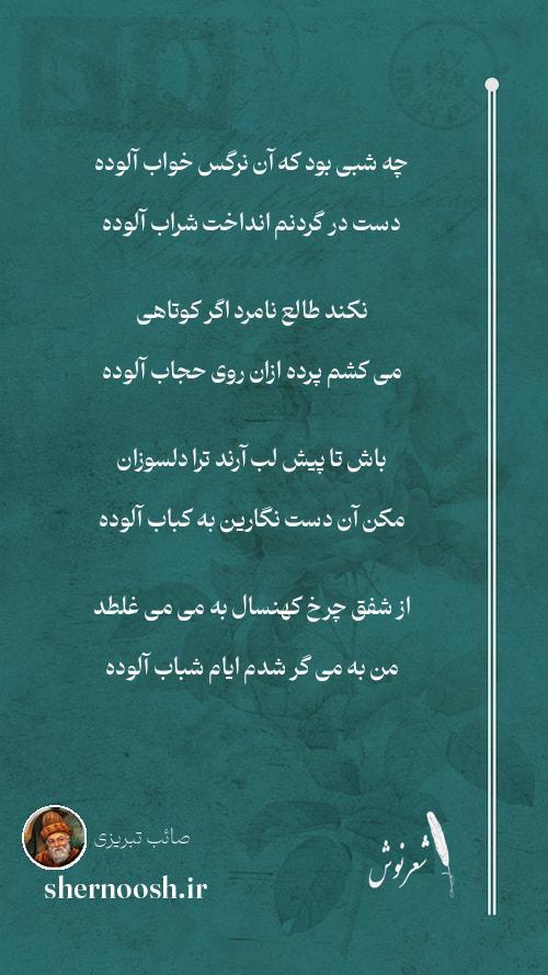 10 می بی آب بود آتش سوزان صائب لطف خوب است که باشد به عتاب آلوده